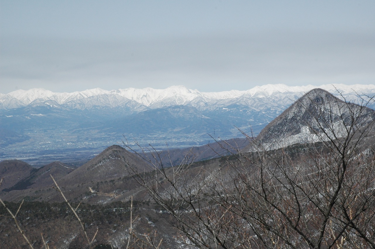 もう一箇所樹木のないところからは、アンテナの林立する地蔵岳と、その外側にある長七郎山が望まれた。赤城山にもまだ随分雪がありそうだ。
