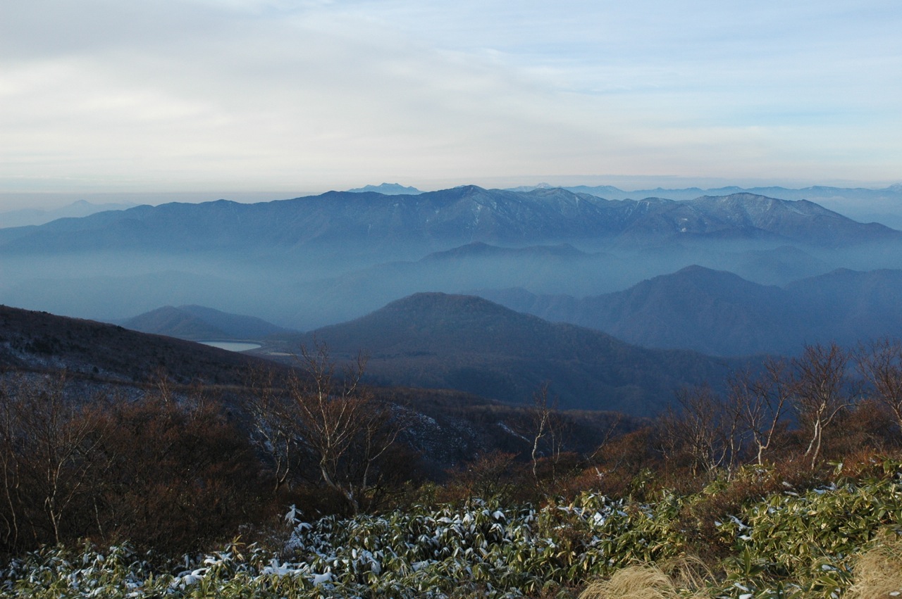 流石山の左側には、南会津と尾瀬の山々。南西面の雪のない山々は、日留賀岳から男鹿岳へと続く稜線であろう。ここもかなりマニアックなエリアである。